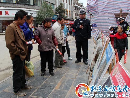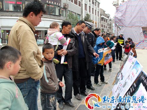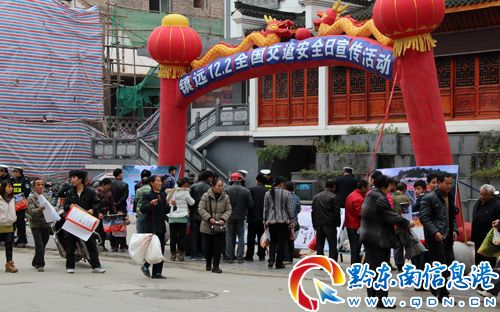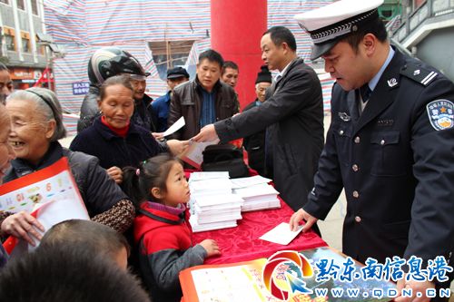 只見現(xiàn)場升起一道5米高的“龍門”,“12.2全國交通安全日”宣傳標(biāo)語分外醒目;一條長50米的事故案例展板通道前圍滿群眾,民警在講解事故原因及交通違法危害;一臺(tái)大彩電在播放交通安全宣傳片,一群小學(xué)生在聚精會(huì)神觀看;縣公安局副局長、交警大隊(duì)長張大江與龍副縣長一道,帶領(lǐng)6名交通民警向過往群眾、機(jī)動(dòng)車駕駛員發(fā)放《名城駕友》、新部令宣傳冊、2013年日歷、掛歷等宣傳資料…….現(xiàn)場人頭攢動(dòng),人聲鼎沸,猶如集市一般熱鬧非凡。