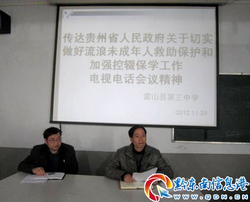 近來,畢節(jié)市七星關(guān)區(qū)發(fā)生5名未成年男孩在垃圾箱內(nèi)死亡事件引起省委、省政府的高度重視,并要求各級學校加強管理力度,扎實開展關(guān)愛流浪未成年人的幫扶工作,加大控輟保學工作力度。為落實省委、省政府有關(guān)精神,雷山縣教育局召開各中小學校長會議,貫徹落實省政府關(guān)于切實做好流浪未成年人救助保護和加強控輟保學工作的電視電話會議精神。