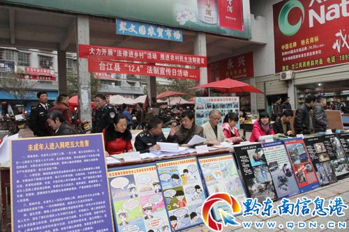 12月4日上午,臺江縣政府辦、綜治辦、公安局、民政局、計生局等13個部門在臺江縣翠文農貿市場聯合舉辦了一場以“大力開展“法律進鄉村”活動 推進農村民主法制建設”為主題的法制宣傳日活動。為廣大人民群眾提供了法律援助,在全縣營造了濃厚的法治氛圍。