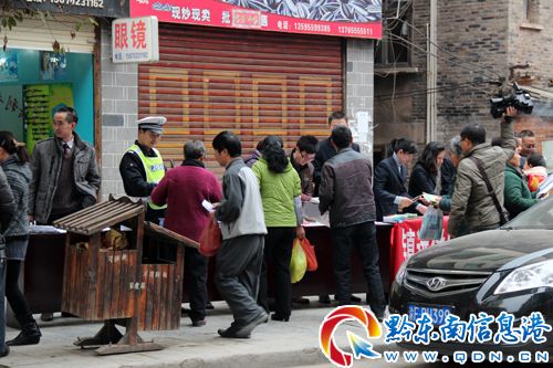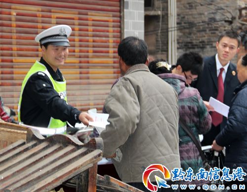 宣傳活動現場設在熱鬧的鎮遠“靈角寨”街道,展臺剛一布開,群眾就紛紛圍攏上來,有要宣傳資料的、有反映問題的、有咨詢法律對某一事情規定的,各部門宣傳員是應接不暇。鎮遠縣公安局交警大隊民警借此良機,不但向過往群眾發放宣傳資料,更通過擺放交通事故案例板、解答咨詢等形式,向過往群眾介紹交通安全相關的法律法規,以及公安機關交通管理部門在化解交通事故矛盾糾紛、保障人民群眾合法權益、服務經濟社會發展、維護社會和諧穩定等方面取得的成效,進一步增強了群眾的法律意識和交通安全意識,拉近了警民之間的距離,促進了警民關系和諧。
