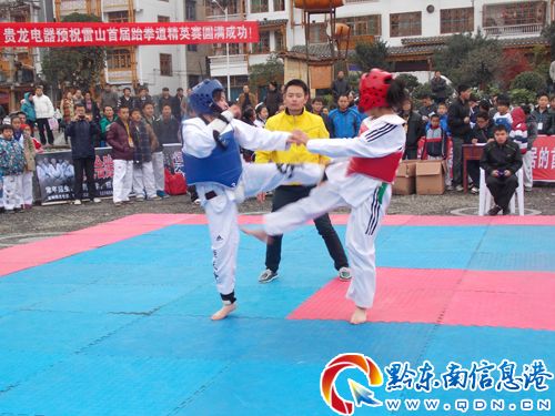 12月1日至2日,由黔東南州社會(huì)體育管理中心主辦,雷山縣文體廣播局、黔東南州州跆拳道協(xié)會(huì)承辦、恒天跆拳道教學(xué)聯(lián)盟協(xié)辦的“2012黔東南州雷山苗年鼓藏節(jié)‘方祥天麻杯’跆拳道精英賽”在雷山縣城木鼓小廣場(chǎng)舉行。來(lái)自黔東南州的部分中小學(xué)校5-19歲的兒童、少兒、青少年11支代表隊(duì)、248名運(yùn)動(dòng)員參與角逐。(張希才 攝影報(bào)道)