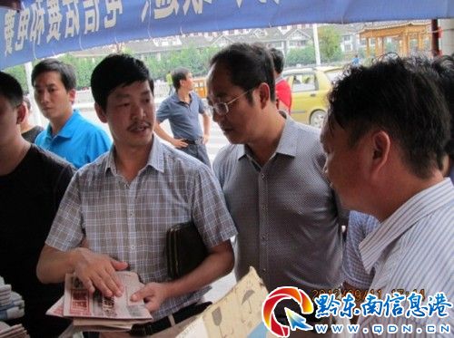 省檢查組一行在雷山聽取了該州“掃黃打非”工作情況匯報,會上,黔東南匯報了該州上半年開展“掃黃打非”工作情況。今年上半年,該州堅守重點,積極組織開展好“掃黃打非”工作,共出動執法人員2931人次,檢查出版物店檔攤點1489個次,檢查印刷復制企業983家次,收繳非法出版物73466冊(盤),其中違禁出版物9095冊張,淫穢色情出版物2490冊(盤)、侵權盜版出版物3555冊張,行政處罰非法出版物(圖為檢查雷山縣書報刊亭)案件38起。完成了國家“掃黃辦”督辦的“掃黃打非”文守蓉非法銷售教輔一案,吊銷了天柱縣金城書店出版物經營許可證,配合省文化廳取締了一非法色情網站九啦啦網站。下一步,該州將扎實推進查堵反制香港政治性非法有害出版物專項行動和集中整治淫穢色情出版物及信息專項行動的深入開展,高效完成好8-10月“掃黃打非”各項工作,以優異成績迎接黨的十八大勝利召開。