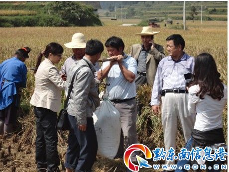 9月29日,貴州省糧食高產創建活動領導小組邀請省、州有關領導、專家和丹寨縣財政局、丹寨縣審計局、丹寨縣統計局等對丹寨縣農扶局和黔東南州農技站共同實施的水稻高產創建項目進行了測產驗收。驗收組按貴州省糧食高產創建測產驗收實施辦法,采取分3個片區,分別隨機抽取高、中、低產3塊田,共9塊田15.2畝進行了實割實測。經測算:水稻高產創建項目最高單產達806.08公斤,最低單產達693.15公斤,平均畝產達734.5公斤。