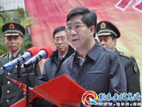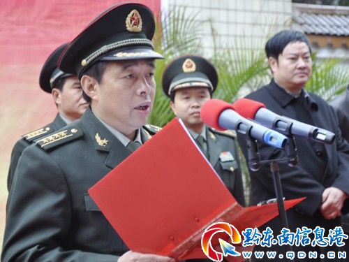 州委常委、凱里軍分區司令員楊治岑在歡送儀式上講話
