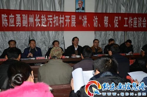 陳應勇在污扣村小學召開“講訪幫促”座談會。會上,陳應勇宣講了黨的十八大會議精神、省委十一屆二次全會及州委九屆二次全會精神,并就進一步解放思想、加快產業發展和與全國同步實現小康社會等問題與村民代表親切交談,幫助污扣村進一步理清發展思路。他強調,黨的十八大提出到2020年要全面建成小康社會的宏偉目標和省委十一屆二次全會提出的“531”目標,為污扣村今后的發展帶來了難得機遇,一定要不斷解放思想,轉變觀念,因地制宜,加快發展特色優勢產業,做大規模,形成品牌,促進農民增收,全面提高人民群眾生活水平,從而全面實現小康。他要求,一是要進一步加強學習,深刻領會黨的十八大和省委十一屆二次全會精神,進一步解放思想,大膽工作,全面貫徹落實好黨的十八大會議精神,加快經濟社會發展,促進社會和諧。二是要進一步理清產業發展思路,因地制宜地發展香豬養殖業和核桃種植業,不斷形成規模,創造品牌,形成效益。三是州、縣各職能部門要在項目編制申報、項目資金、產業培育等方面給予大力支持,改善農村基礎設施條件,促進農民安居樂業。四是要著力解決好醫療衛生、民政救助、學生教育等老百姓最關心最直接的切實利益,不斷改善人民生活條件,提高人民生活水平。