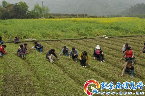 龍佳松育苗基地農民正在為小柏樹苗除草