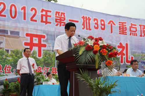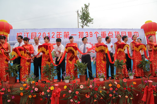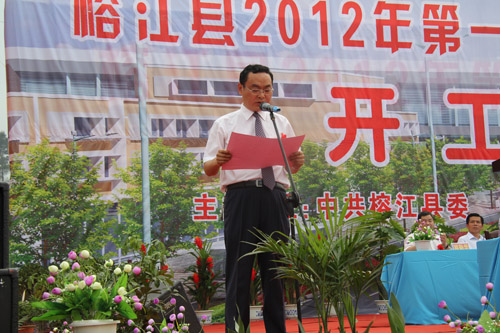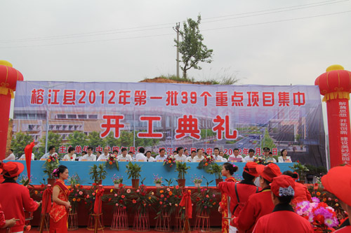 在全省上下認真貫徹落實國發2號文件和省第十一次黨代會精神的大好形勢下,4月28日,榕江縣隆重舉行2012年第一批39個重點項目集中開工典禮,這是該縣認真實施“三化同步”戰備,加快項目建設的一項重大舉措,標志著榕江進入了增比進位、后發趕超的重要機遇期,必將有力地推動榕江經濟社會的跨越式發展。