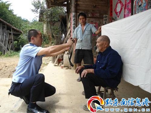 圖為2012年8月26日,該所民警放棄周末休息到轄區地處比較偏遠半河村和谷定村,上門為老弱病殘、行動不便的老百姓照相,辦理一代證換領二代證和發放二代證工作。當天該所在兩個村莊為老百姓照相辦證23人,發放二代證35人。(龍冠宇 吳豪)