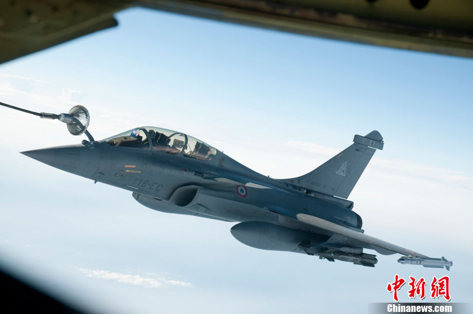 一法國陣風戰機攻擊利比亞期間進行加油