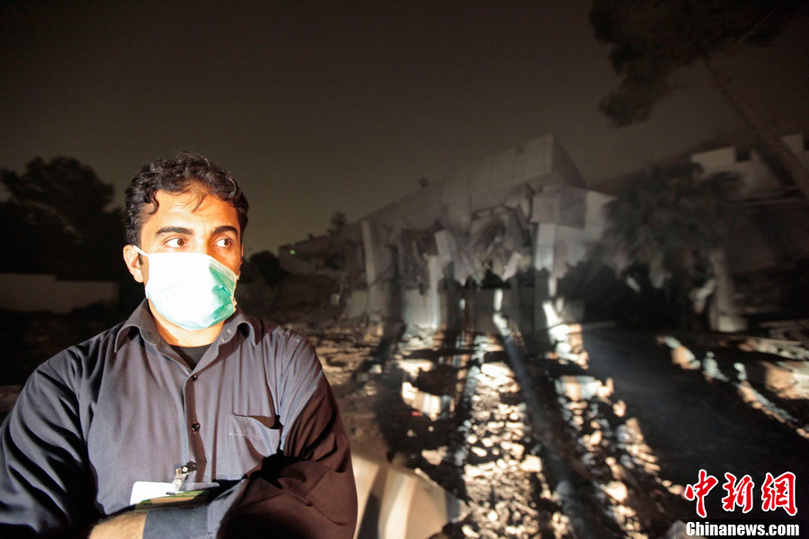 卡扎菲一處辦公樓遭北約戰機轟炸變成廢墟