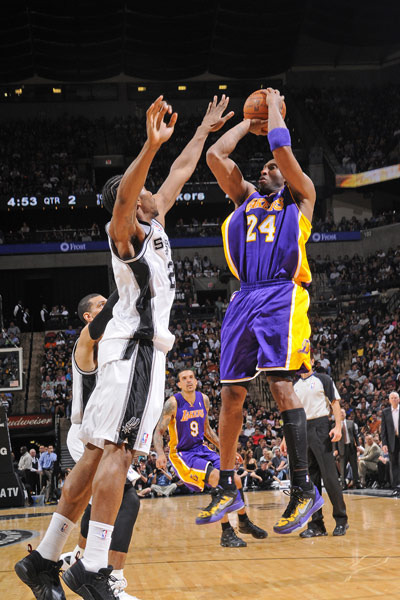首節比賽科比率先上籃得手并造犯規上演2+1,鄧肯在內線連得4分,加索爾中投還擊。帕克在進攻端屢屢甩開塞申斯跳投命中,倫納德外線飚中遠投。拜納姆補籃得手,吉諾比利飛身暴扣。鄧肯封蓋慈世平,妖刀突破上籃。科比跳投得手,吉諾比利遠投三分中的,拜納姆上籃得手,湖人以25-32落后馬刺。