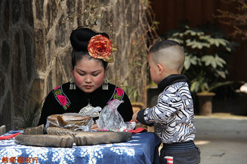在麗江,人是自由散漫的。在西江,看到更多是人們的淡定從容。苗族媽媽專注地繡著苗繡,來此寫生的畫家認真地想象著構圖,吊腳樓上的苗家哥哥若有所思地吹著蘆笙,游客們穿著苗族盛裝歡樂地在風雨橋邊玩水,農夫被牛兒牽著趕回家,就連貓兒都毫無戒備地靠在窗臺上午睡……