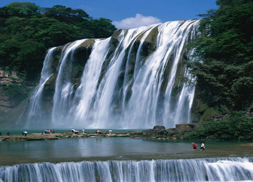 黃果樹大瀑布是貴州第一勝景,亞洲第一大瀑布,也是世界最闊大壯觀的瀑布之一。黃果樹大瀑布的實際高度為77.8米,其中主瀑高67米;瀑布寬101米,主瀑頂寬83.3米。周邊分布著雄、奇、險、秀風格各異的大小18個瀑布,形成一個龐大的瀑布“家族”,被大世界吉尼斯總部評為世界上最大的瀑布群。黃果樹大瀑布是瀑布群中最為壯觀的瀑布,是世界上唯一可以從上、下、前、后、左、右六個方位觀賞的瀑布,也是世界上罕見的水簾洞自然貫通且能從洞內外聽、觀、摸的瀑布。