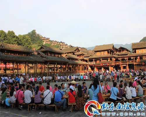 2012年下半年以來,西江千戶苗寨景區的歌舞表演一改往常風格,重點打造了具有苗族特色的歌舞表演,其中走進國家大劇院演出的“長桌宴舞”亮相西江千戶苗寨,夸張的表演形式,精湛的民俗技藝,詼諧有趣的場面,波瀾起伏的故事情節讓游客如癡如醉。建立起來的西江文化旅游品牌,助推了西江的旅游業異常火爆。(李雪)