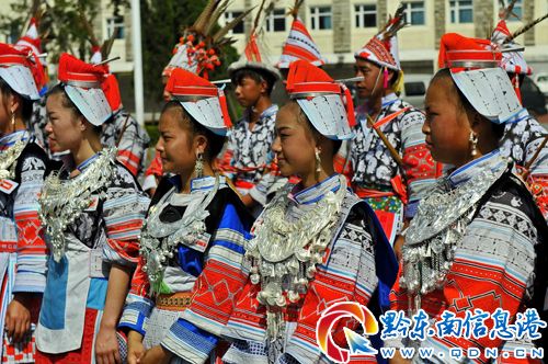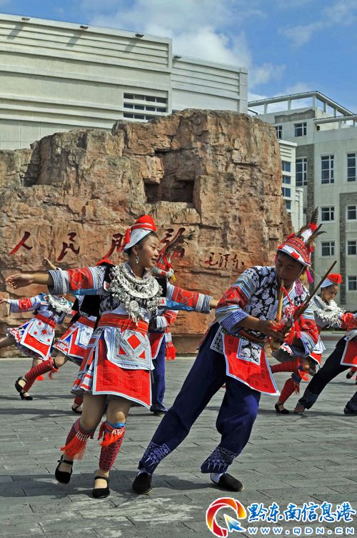 9月9日,革家青年男女在凱里市給觀眾表演歡快的《踩親舞》