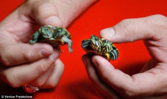 托德一手拿著一只雙頭龜。2010年1月,托德獲得吉尼斯世界紀(jì)錄認(rèn)證,成為世界上擁有雙頭或者多頭動(dòng)物最多的人
