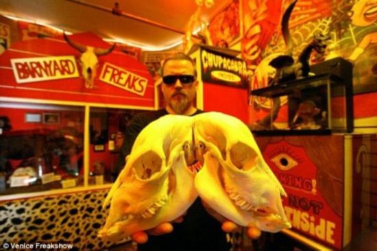 托德同樣保存了大量雙頭動(dòng)物標(biāo)本,例如照片中展示的雙臉貓