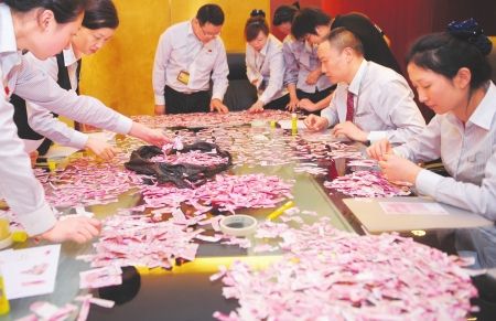 “考慮到這筆錢是用來治病的,我們破例抽調(diào)了12名業(yè)務(wù)骨干,幫他拼接。”張平說,讀者和網(wǎng)友建議的“稱重”兌換和“電子掃描”拼接都實(shí)現(xiàn)不了,只能采用人工拼接的方法。