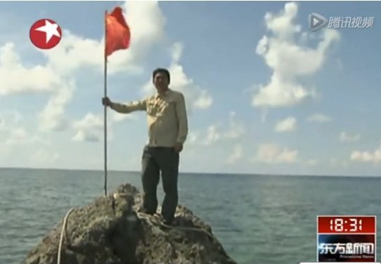 中國記者登上黃巖島主礁 插五星紅旗宣示主權