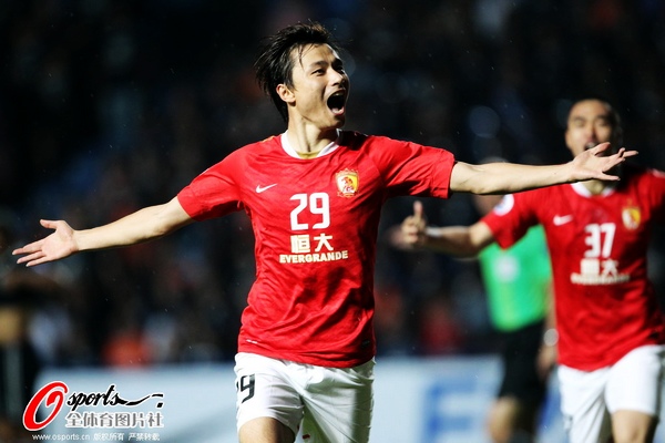 廣州恒大隊出場陣容(4-2-3-1):22-李帥;32-孫祥、6-馮瀟霆、10-鄭智、5-張琳芃(78’7-馮俊彥);37-趙旭日(64’11-穆里奇)、16-趙源熙;21-姜寧(46’8-秦升)、15-孔卡、29-郜林;9-克萊奧