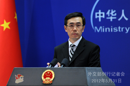 2012年5月31日,外交部發言人劉為民主持例行記者會。