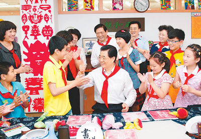 “六一”國際兒童節(jié)到來之際,中共中央總書記、國家主席、中央軍委主席胡錦濤5月31日上午前往北京市東城區(qū)少年宮考察,親切看望在這里參加活動的小朋友們,代表黨中央,向全國各族少年兒童表示節(jié)日的祝賀,向全國廣大少兒工作者表示崇高的敬意。