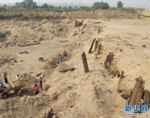 今年4月中旬,農(nóng)民在西安市北三環(huán)外西席村、高廟村北農(nóng)田中挖沙時,意外發(fā)現(xiàn)許多古代木樁。經(jīng)中國社科院與陜西省、西安考古研究機構開展的考古調(diào)查確認為兩千多年前的秦漢古橋,并初步認為是漢長安城向北跨越渭河的大橋。
