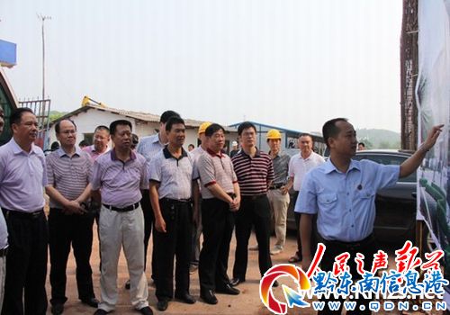 衡陽縣法院院長唐福元(前排左三)陪同與會人員在新審判辦公大樓參觀,副院長廖宏偉在介紹建筑設計圖