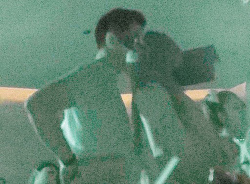 在酒精和強勁的音樂下,兩人由“摸手”變為“湊住耳朵”,完全旁若無人。就在此時辣妹突然獻吻親向黑人的臉頰,而“被親”后的黑人沒有拒絕及退縮,實時“以牙還牙”親向辣妹的臉頰!獲黑人以吻回禮的辣妹即拖著黑人坐在一旁繼續交流,黑人更拿出手機向她“抄牌”,其后黑人發覺場內有記者,急急拉隊離開。