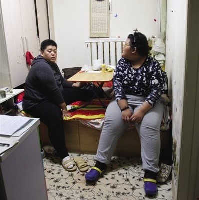狹小雜亂的屋子里,劉成菊(左)和女兒才巾涵常“相互摩擦”。