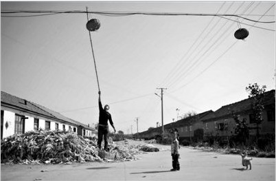 10月14日,莫言的出生地高密市大欄鄉平安莊。得知莫言獲得諾貝爾文學獎后,村委會在村里掛起了30個燈籠。新京報記者 陳杰 攝