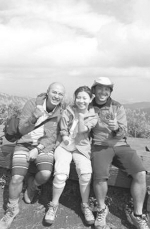 協(xié)助四肢截肢的生命舞者郭韋齊(中)以義肢登山。