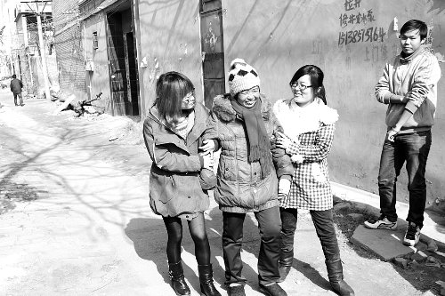 昨天上午,記者和劉交交一起來到她租住的地方,遠遠看見一群年輕人圍著一位婦女有說有笑。