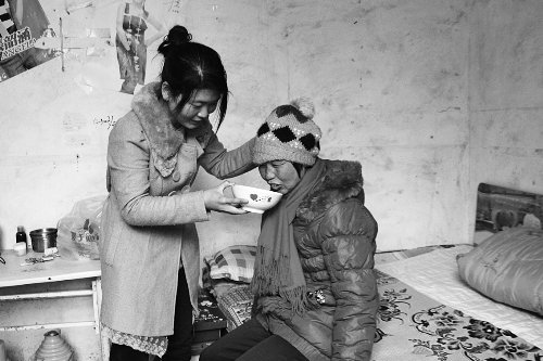 每天早上6時,劉交交起來做飯,喂母親吃過后,再去上課。算著時間,一下課,她就趕快跑回家伺候母親大小便。