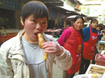 楊艷買到生姜抓起就吃。