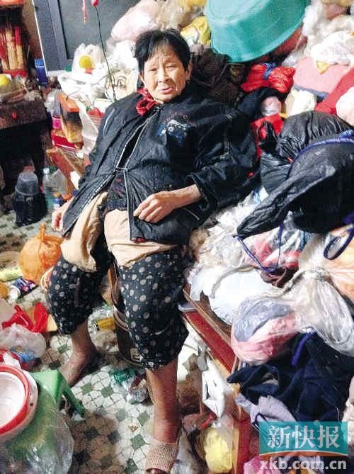 張婆婆靠著她滿屋子的"寶貝"接受采訪。新快報記者任磊斌/攝