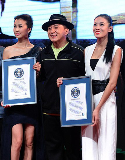 當天,吉尼斯世界紀錄中華區總裁羅文飛抵上海,破天荒連頒兩項吉尼斯世界紀錄證書,一是成龍獲得“表演特技最多的演員”的認證,二是他憑借在片中超乎常人想象的表現獲得“一部影片中身兼職務最多的電影人”的認證。