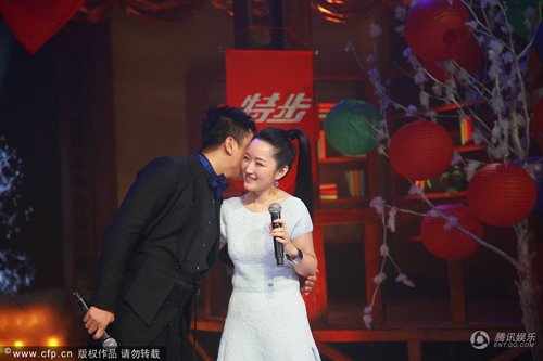 楊鈺瑩17日與毛寧一起錄制《天天向上》,現(xiàn)場(chǎng)遭到汪涵率領(lǐng)天天兄弟“圍攻”獻(xiàn)哈達(dá),而楊鈺瑩和毛寧兩人不時(shí)與其貼面耳語,十分親密。