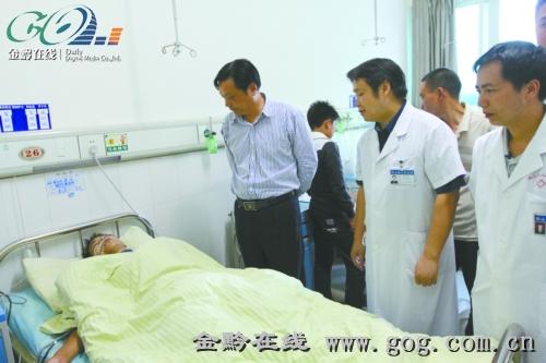 潘志立首先向黃永興表示慰問,叮囑他“醫(yī)院通知出院時(shí)再出院,安心養(yǎng)傷”。黃永興用微弱的聲音感謝黨委、政府給了自己又一次生命。醫(yī)生說,黃永興被送到醫(yī)院時(shí),屬于缺氧癥狀。后經(jīng)初步診斷為腹腔臟器傷,經(jīng)組織搶救,黃永新除了尚感頭痛和腹部不適外,其余各項(xiàng)生命體征平穩(wěn)。