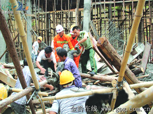 據了解,當天下午1時左右,羅甸縣縣城往羅捆鎮方向,距縣城1公里左右的一新建屠宰場,3名施工人員在水泥澆注時,由于操作不當,4米高的腳手架和剛澆注的水泥柱發生垮塌,一人受傷,一人被垮塌的腳手架和鋼筋混凝土困住。事故發生后,工地工人立即撥打電話報警。
