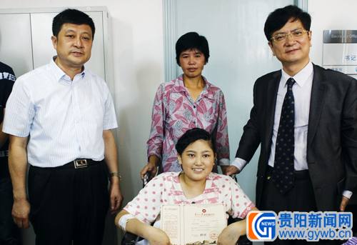 今年6月7日,受肖麗精神感動,當地招考部門為其設單獨考場,肖麗忍痛完成高考,最終以544分的成績,被貴大人文學院漢語言文學專業錄取。