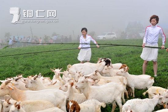在松桃縣盤石鎮“黔東草海”,佳麗體驗牧民放羊