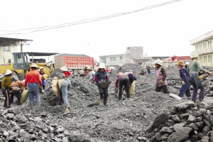7月21日下午,記者來到鳳山煤礦時,只見一群群婦女正在偌大的煤場上選煤,她們雖然累得汗流浹背,但臉上露出的卻喜悅的神情。一位不愿透露姓名的婦女告訴記者,她從早上八點到現在三點這段時間,已掙得75元,馬上就要回家了。在路上,三三兩兩的務工婦女你來我往,有的手里還拎著飯盒。看見記者拍照,她們嬉笑著說:“別照了,黑得很呢。”
