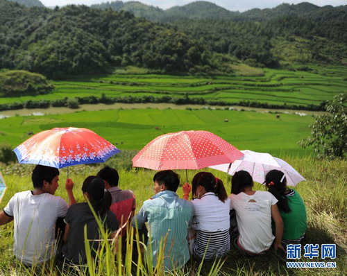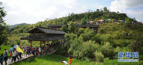 貴州三都縣水各鄉的水族同胞在坡上參加卯節慶祝活動