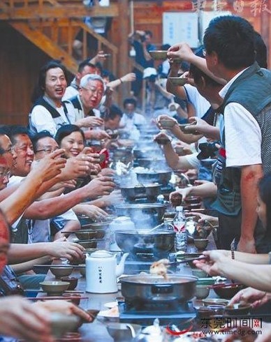 當地有名的苗家長桌宴,多達100多人同時就餐,觥籌交錯,無比歡樂