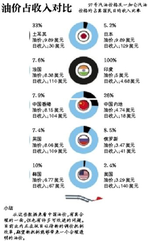 元宵節過后,車主們迎來了2013年油價的首次上調,尷尬的是,中國臺灣地區則下調了油價。有媒體稱之為“跌漲”,出現這種情況是因為兩岸調價周期不同。與國際油價相比,中國油價到底貴不貴?綜合機構統計數據顯示,中國油價絕對值并不算貴,但與人均收入相比,中國人的油價負擔明顯偏高。