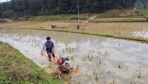 3月24日,在岑鞏縣客樓鄉(xiāng)白家壩犵嶺坳當地受災群眾正在忙著翻犁稻田。