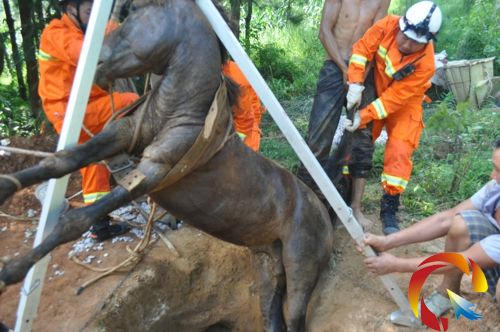 7月24日下午15時許,丹寨縣龍泉鎮(zhèn)展良新村新變電站旁100米處,一匹馱馬在運送沙石過程中,不慎墜入洞穴,馱馬的主人無計可施,便撥打了119報警電話救助。