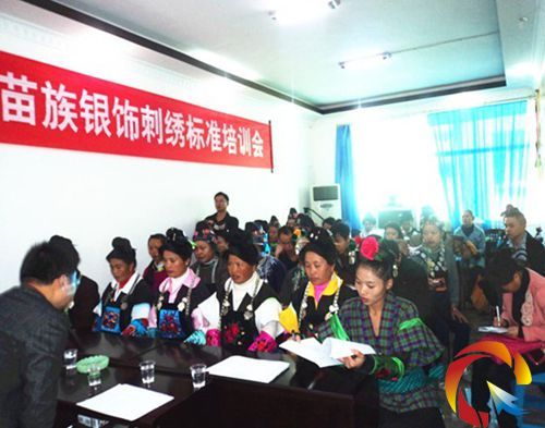 培訓會由黔東南州質監局標準化科楊勇副科長主講,他向參會企業和人員詳細講解了貴州省地方標準《地理標志產品黔東南苗族銀飾》(DB52/T 760-2012)、《地理標志產品黔東南苗族刺繡》(DB52/T 761-2012),并在現場為大家支招獻計、解疑答惑,要求各企業務必要嚴格執行標準規定,建立以規范生產為核心,以品牌提升為重點,以監督制約為保障的銀飾、刺繡產業標準化工作機制。同時要求銀飾、刺繡生產企業必須統一按照標準組織生產,嚴把質量關,嚴格出廠檢驗制度,使苗族銀飾、刺繡在實現規范化、規模化和產業化健康發展的同時,進一步提升產品質量,走向國際市場。