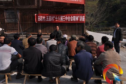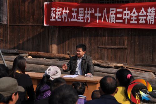 在巫起村的操場上,村里的老老少少,和遠從幾十里外來的龍泉鎮五里村村干部們聚在了一起,共同分享黨的“十八大三中全會”精神。